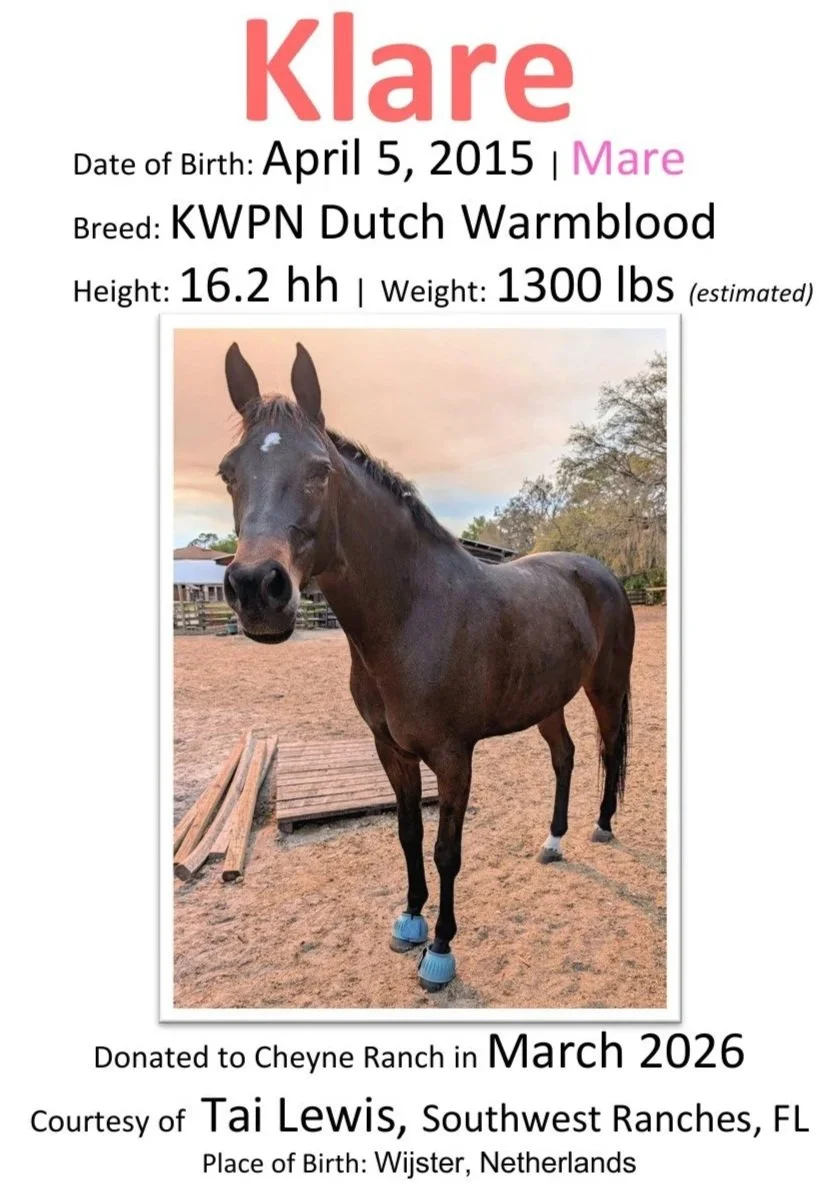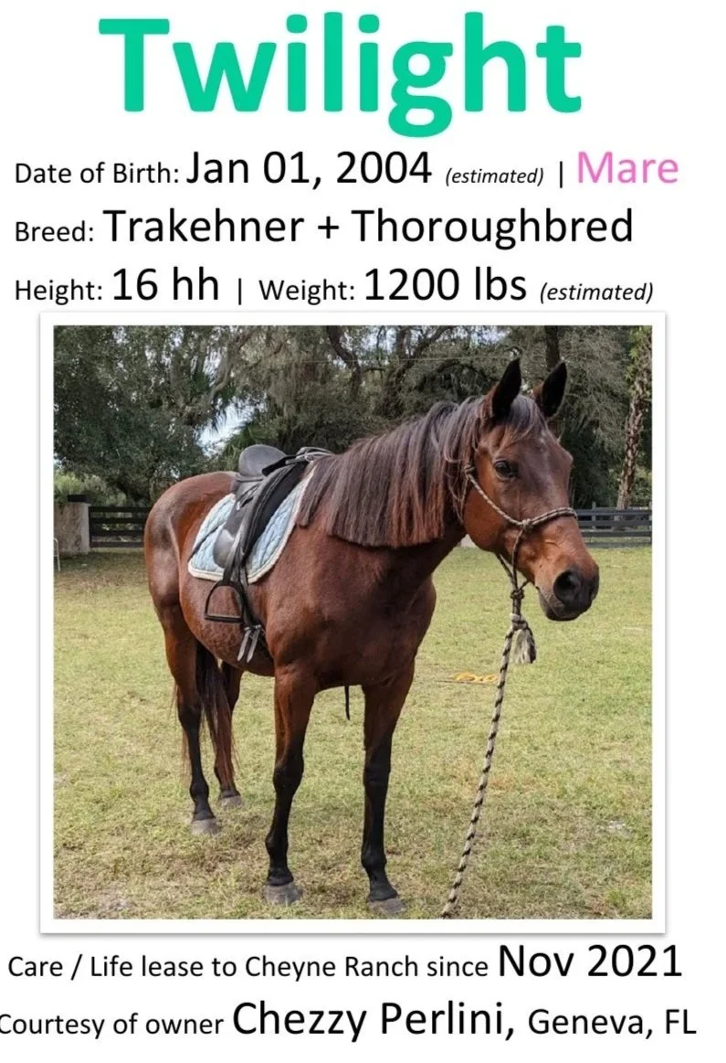 Horses - in order of how they arrived at Cheyne Ranch